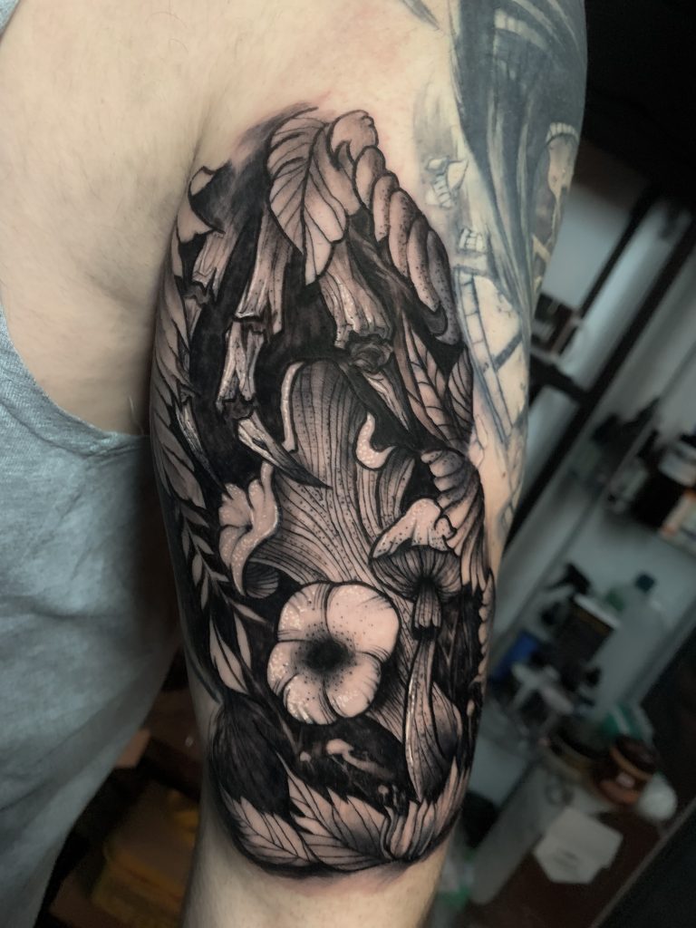 Explora el impactante mundo del Blackwork en nuestro estudio de tatuajes. Este estilo audaz se caracteriza por líneas sólidas y áreas negras prominentes, creando composiciones gráficas y poderosas. Nuestros artistas expertos dominan el arte del Blackwork para ofrecerte tatuajes únicos y significativos. Sumérgete en la elegancia y la fuerza visual de este estilo en nuestro estudio.
